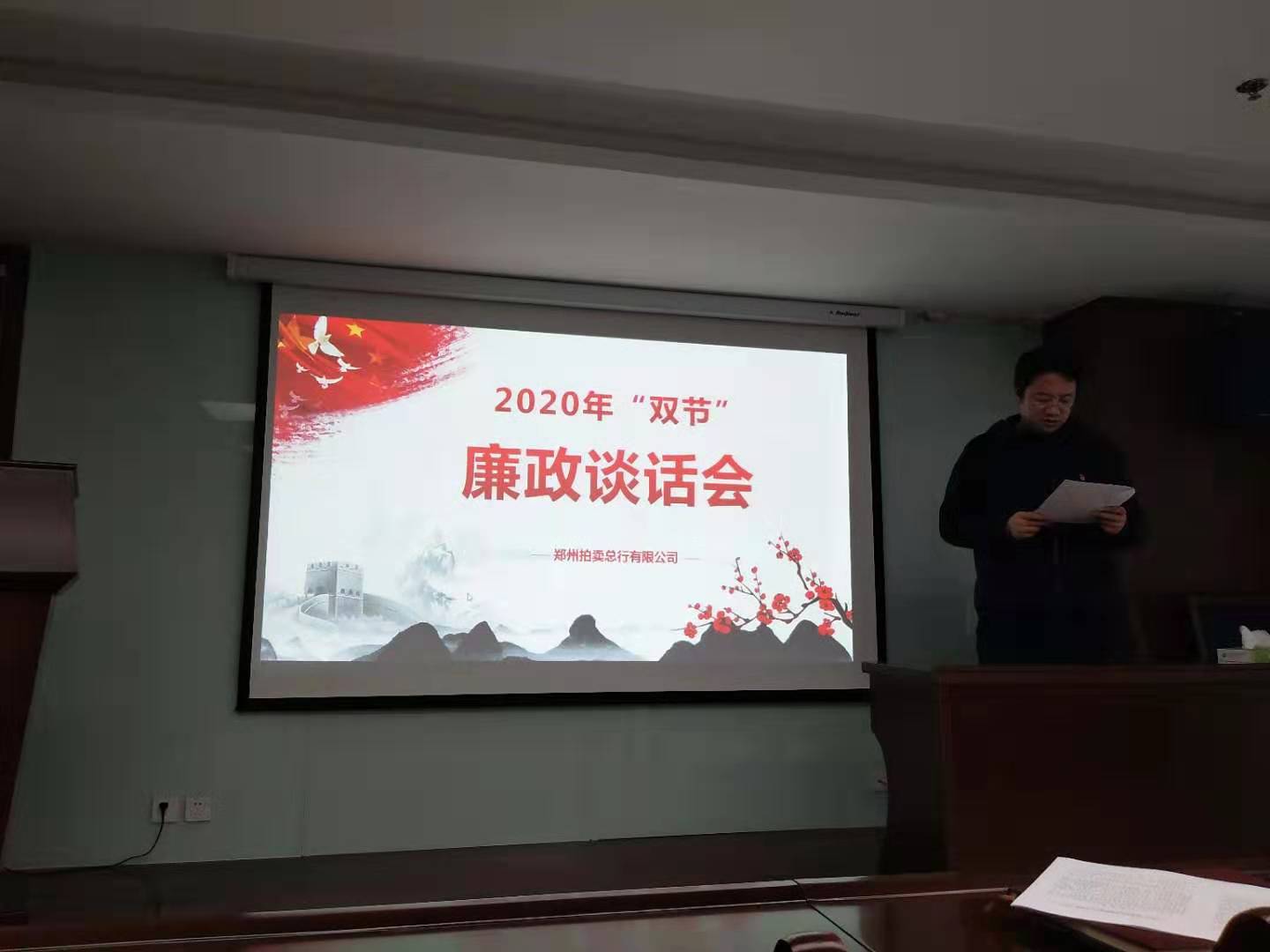 為(wèi)深入貫徹全面從嚴治黨要求,堅持落實中央八項規定精神,營造風(fēng)清氣正政治生(shēng)态,1月(yuè)(yuè)8日下(xià)午,興安盟金衡拍賣有限責任公司組織召開2020年節前廉政談話(huà)會,公司全體(tǐ)人(rén)員(yuán)參加會議(yì),會議(yì)由董事(shì)長楊大為(wèi)、黨支部負責人(rén)熊峰共同主持。